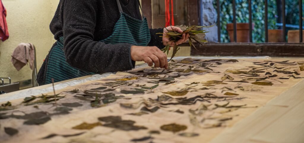 La estampación botánica consiste en transferir la huella de plantas y hojas al tejido.